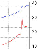 Should the issue arise from the amplifier it's possible spikes in power measurements could be noticed. An example of this is shown on the left image where the amplifier failed above 150mA. Depending upon the damage, the amplifier may fail to meet certain test levels or stop at a set frequency.