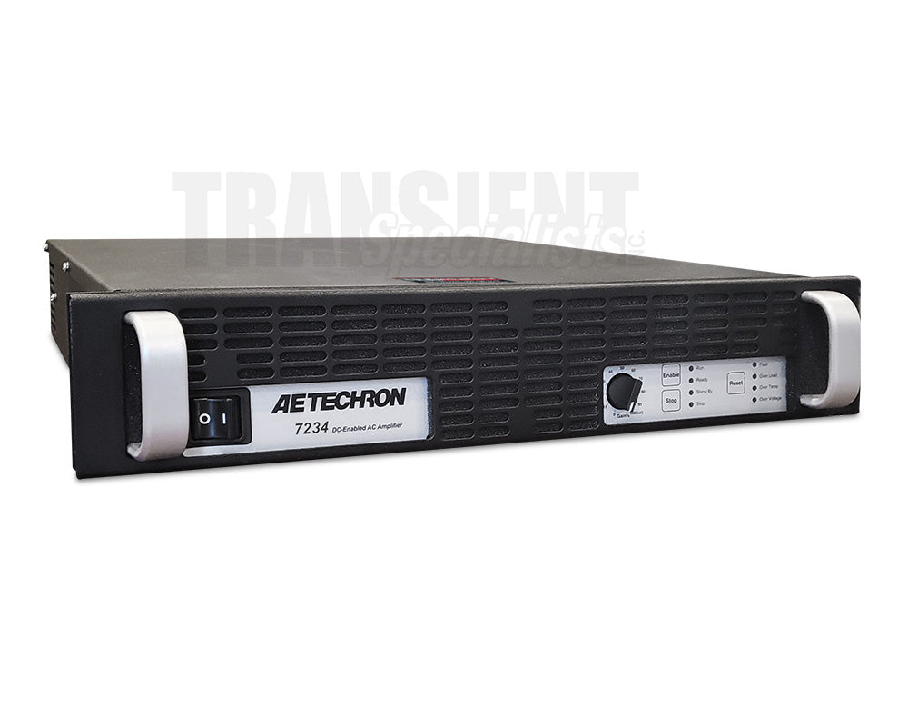 AE Techron’s 7234 amplifier is a capable, versatile, and reliable EMC lab partner. This powerful amplifier/battery simulator provides up to 28A of long-term DC current with surges of up to 50A and can slew voltages at rates of up to 100+ V/µs.