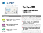 All AXOS test systems come equipped with all the hardware needed for instant upgrades by only entering optional key codes into the licence code manager of the unit. After entering the key code(s) the additional test functionalities like Surge Combination Wave, Ring Wave, Telecom Wave, EFT/Burst or Voltage Dips and Interrupts become available immediately. No direct intervention has to be done by the user at all.
