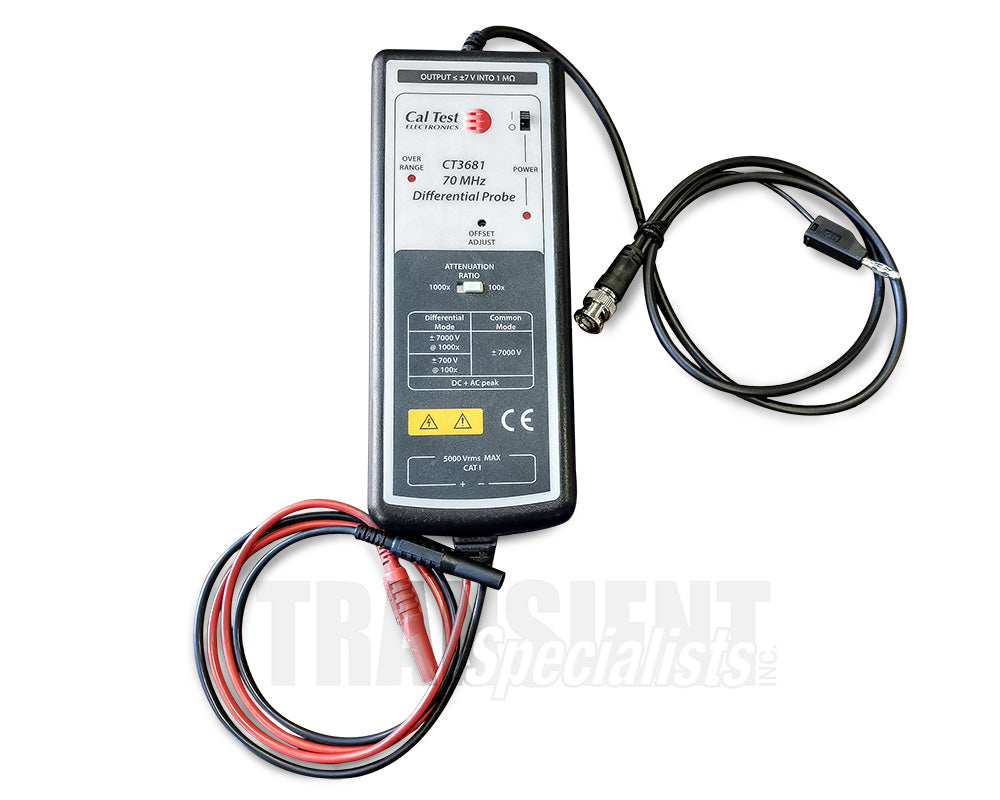 Differential probes allow safe, accurate measurement between two voltage points where neither point is referenced to ground. The CT3681 and CT3683 both offer a 70 MHz bandwidth and can test up to ±7 kV (DC + AC peak). Compatible with oscilloscopes from all major manufacturers, the probes can be battery operated, powered by a universal adapter (optional), or powered by USB power lead (optional) if the oscilloscope is so equipped