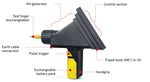 NSG 435 is supplied with standard accessories, including interchangeable test tips, a grounding cable and battery charger - all in a durable carrying case. There is an optional fiber optic remote control trigger for operation inside a screened room or enclosure. The LCD panel gives the operator a clear, continuous indication of all the test parameters, the operational status of the instrument and the current function of each of the five softkeys.