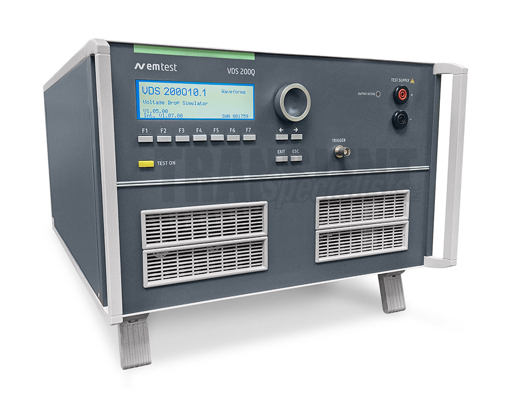 The VDS 200Q series is used to simulate the various battery supply waveforms recommended by international standards and by car manufacturer requirements. Especially the manufacturer requirements are an important area covered by the VDS 200Q series as there is a large variety of requirements. Secondly, the VDS 200Q series serve as powerful DC voltage supplies for the DUT during the tests with automotive transients. The VDS 200Q series covers all three supply voltage categories (48 V, 24 V and 12 V). Their current capability ranges up to 100 A or more depending on the model and your application.