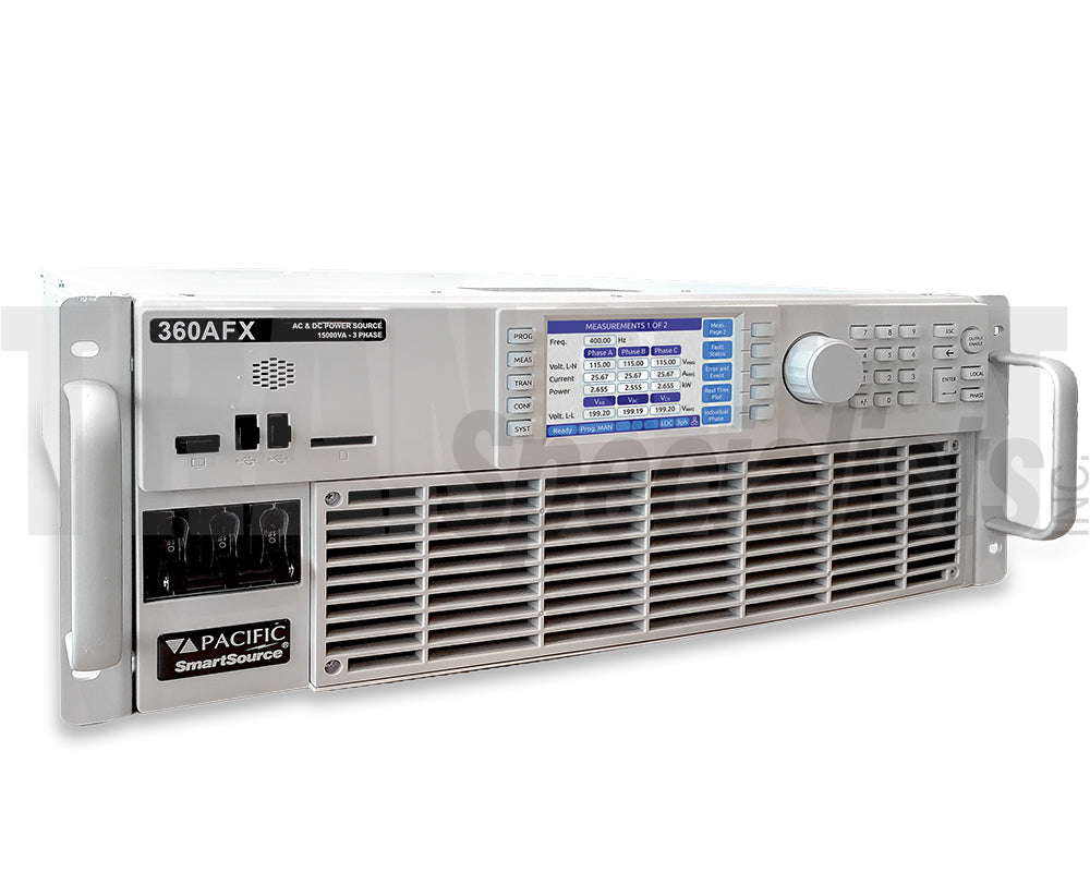 The Pacific Power Source (PPS) AFX Series® power source is designed to provide accurate, stable and clean AC or DC power to a unit under test. The PPS AFX Series® power supply can be operated from the front panel (manual mode) or using RS232, USB or LAN (Ethernet) remote control.