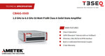 Fan speed adjusts depending on the heatsink temperature thus ensuring the minimum audio noise level possible in the operating environment. The inbuilt calibrated forward power coupler provides a quick and easy way to monitor forward power with any power meter. Input overdrive protection prevents damage to the input devices due to accidental high input power. Multiple remote interfaces are available as standard including USB, GPIB, RS232, and Ethernet. Amplifier gain can be controlled either remotely through one of the available interfaces or via the front panel touch screen.
