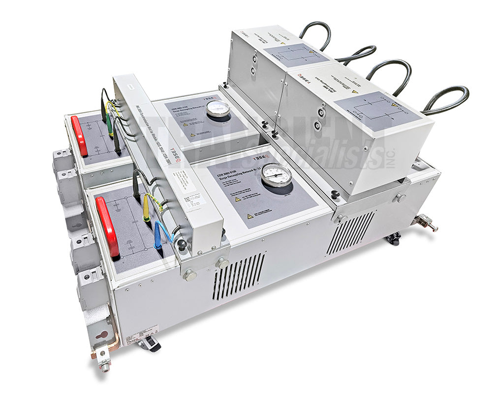 Surge levels up to 8 kV / 4 kA with 1.2 / 50 μs combination wave can be coupled by the CDN 3083-S100. EUT supply voltages of up to 620 V rms or 620 VDC at 100 A are supported. The CDN 3083-S100is designed for simple and safe manual operation. All symmetrical and asymmetrical coupling modes of IEC / EN 61000-4-5 and ANSI C62.41 are supported by the CDN 3083-S100.
